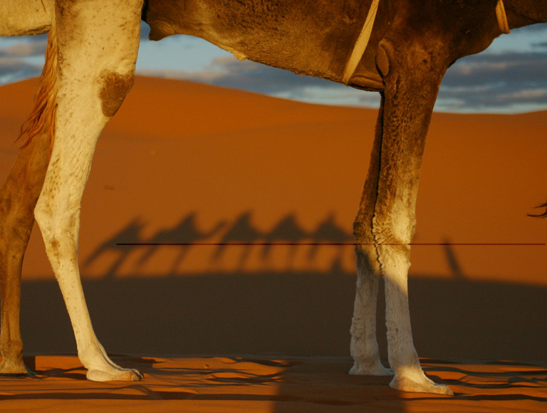 Es difícil ver a Hamadi parado. Viajando con él, cuando uno todavía está aterrizando ante un sobrecogedor paisaje, uno tiene la sensación de que está yendo cuando él está viniendo. Como hombre de acción, no se queda parado ante lo que ve o siente. Guarda esa sensación interior hasta convertirla en imagen, en asidero de una meta más profunda que le lleva más allá del simple viajero hasta convertirle en un expedicionario del movimiento congelado en una instantánea. Hamadi no hace turismo. Pues sólo el que vive lo siente más y mejor.